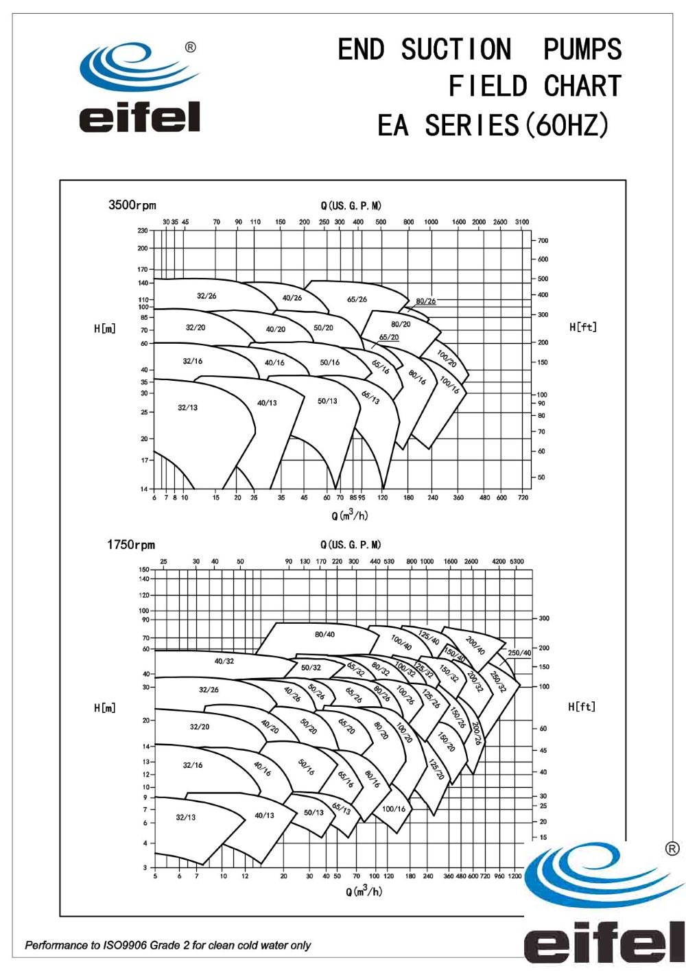 85℃(standard) ; 120℃(on request)إيفلمضخة حريق أفقية ذات شفط طرفي مصنوعة من الحديد الزهر مع محرك ديزل