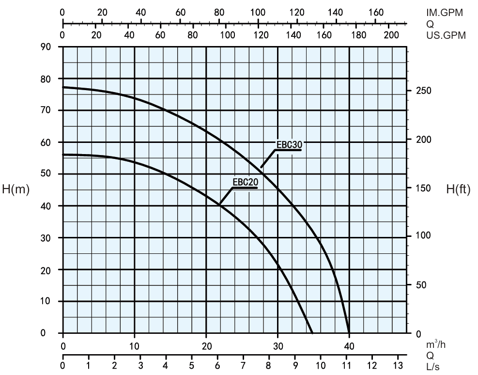 35m³/h(EB20); 40m³/h(EB30)رؤوس :